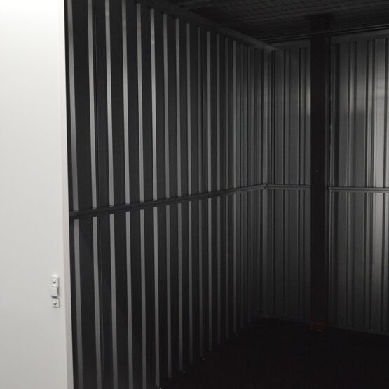 Opbevaringsboks på 6 m2 til sikker opbevaring af dine ejendele med dobbeltdør. Den er opvarmet og med gulvtæppe. Boksen kan aflåses med hængelås.